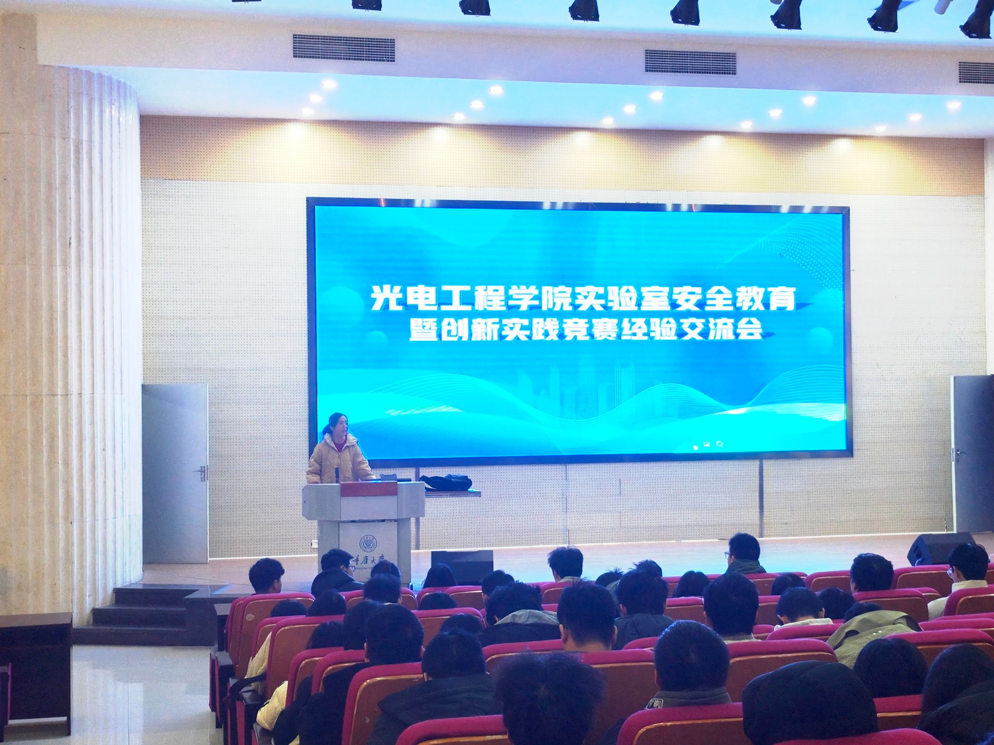 2025年12月21日上午10时,光电工程学院在科学城校区综合楼DZ126报告厅成功举办实验室安全教育暨创新实践竞赛经验交流会。活动旨在进一步增强学生的实验室安全意识,提升其在创新实践方面的综合能力。会议由光电学院实验教学中心刘博超、学生创新中心应苑松两位老师共同主持。